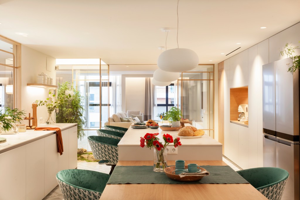 Tras la demolición completa, hoy esta vivienda del centro de Valencia cuenta con un amplio salón-comedor con acceso a la cocina, una lavandería, tres dormitorios, tres baños, un estudio y gimnasio.