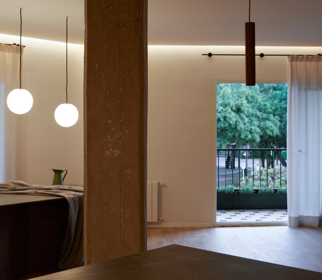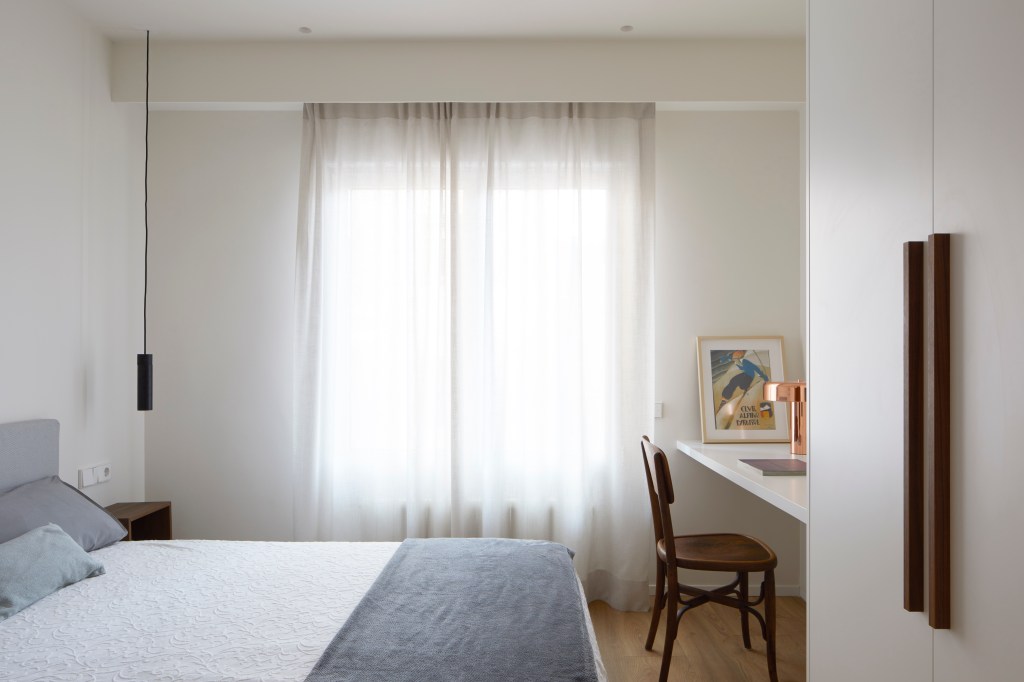 En el barrio de la Petxina de Valencia, en torno al frondoso parque de Horticultor Corset, se ubica esta vivienda de amplio salón, terrazas exterior e interior, tres dormitorios y dos baños, diseñada y construida por Cerveró Obras.