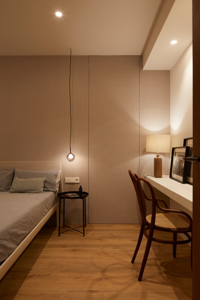 Las dos habitaciones sencillas se visten, respectivamente, con un armario de cinco puertas en madera lacada en blanco con tiradores en nogal, a conjunto con el resto de la vivienda. Estos espacios se iluminan automáticamente al detectar la apertura de puertas. Asimismo, cada dormitorio cuenta con un escritorio.