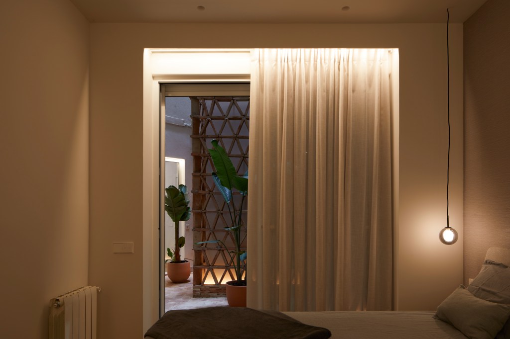 Cuando cae la noche, llega el momento de relajarse y dar protagonismo a la iluminación cálida de cada una de las habitaciones.