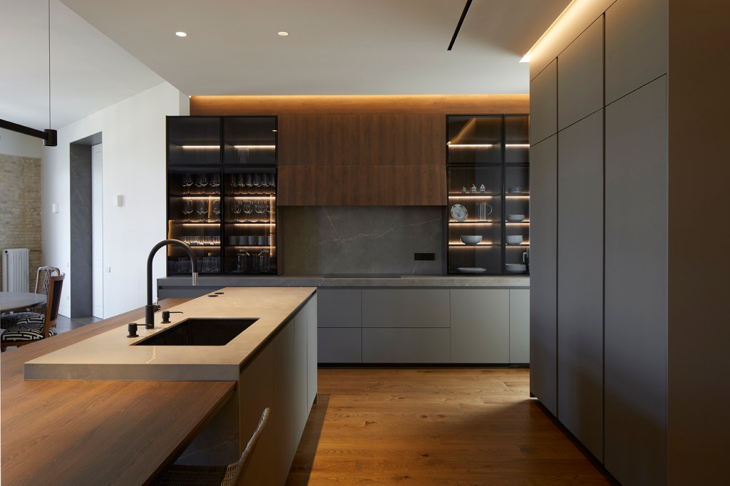 Los tonos neutros de la cocina resaltan la vida de 21 ‘Guest’ de Lladró, exclusiva porcelana artesanal valenciana.