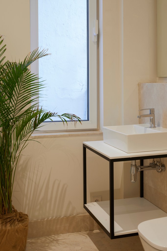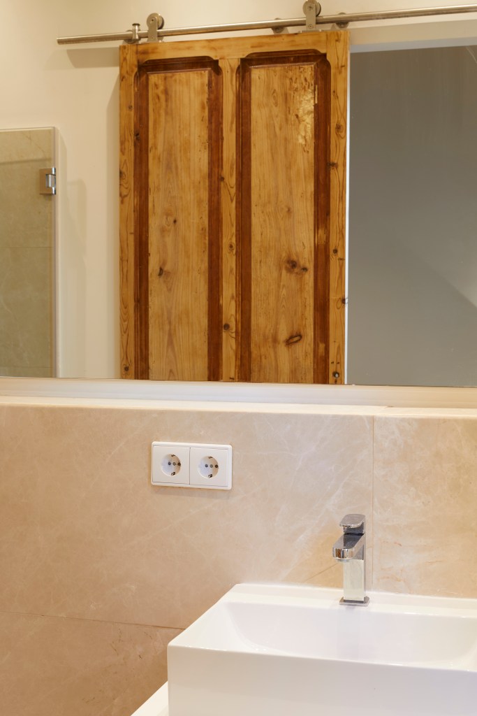 En los baños se ha optado por los acabados pétreos de Porcelanosa, con los que se consigue aunar vanguardia y tradición.